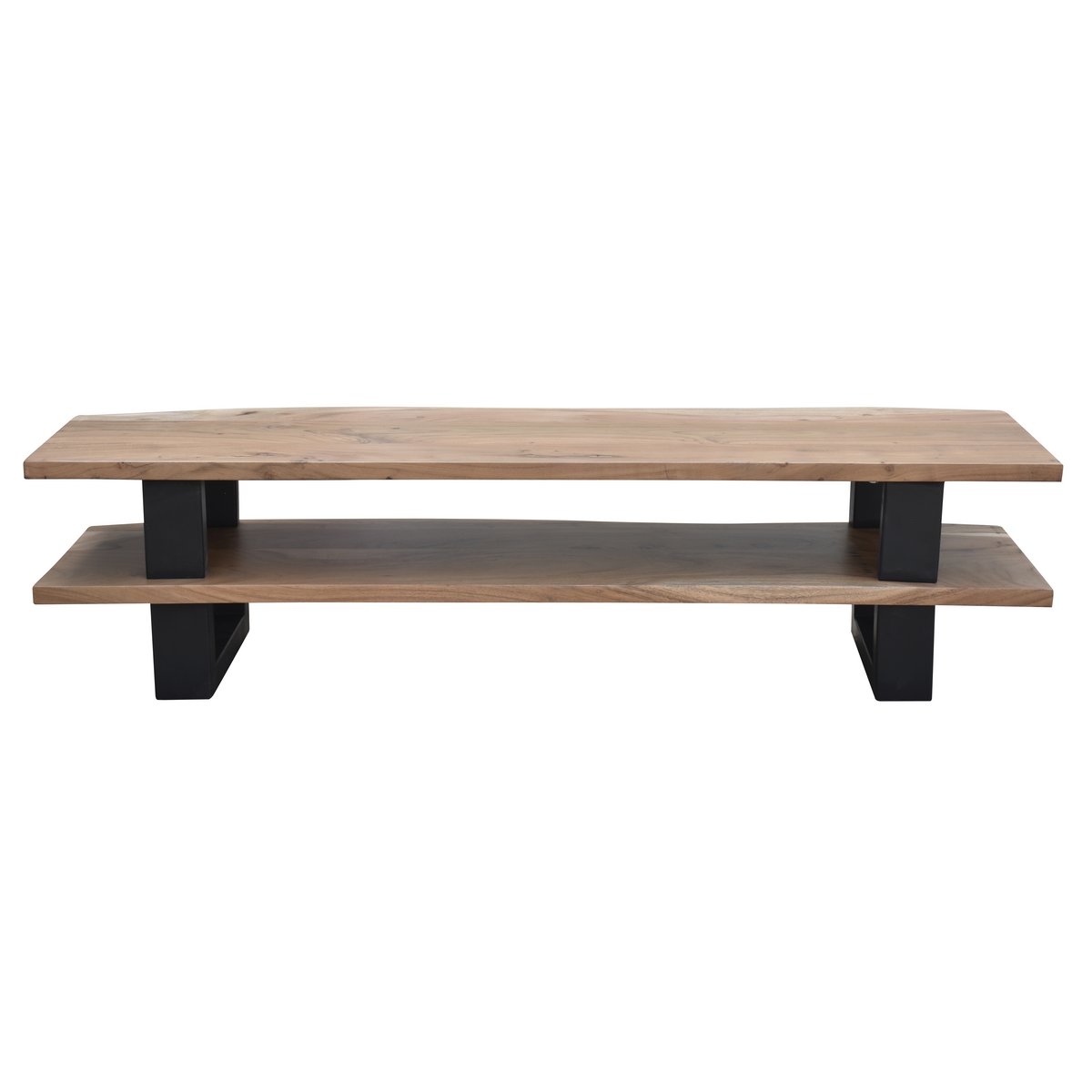 Comodo mobile basso dal fascino naturale: il mobile TV aperto offre molto spazio per riporre televisori, apparecchi hi-fi e accessori decorativi. Con una larghezza di 140 cm, il mobile basso è adatto per una TV fino a 58". Due assi con bordi in vero albero garantiscono un aspetto di alta qualità e un aspetto caldo. Le venature vivaci, le forme dinamiche e le diverse gradazioni di colore rendono ogni pezzo unico. Entrambi i ripiani del mobile basso sono collegati con gambe in metallo, in modo che la combinazione di legno caldo e metallo freddo crea un look generale industriale e moderno che si adatta a molti stili di interni. Con l'aspetto arioso del ripiano, un classico mobile TV viene reinterpretato - sia scandinavo, in un look moderno di fabbrica o completamente classico - il mobile basso si integra facilmente in molti stili di interni e sarà sicuramente un'attrazione rustica in soggiorno camera. Un altro vantaggio: grazie alla struttura continua a 360°, il mobile basso può essere posizionato liberamente anche nella stanza. Dimensioni vano 93,5x40x14 cm Per saperne di più