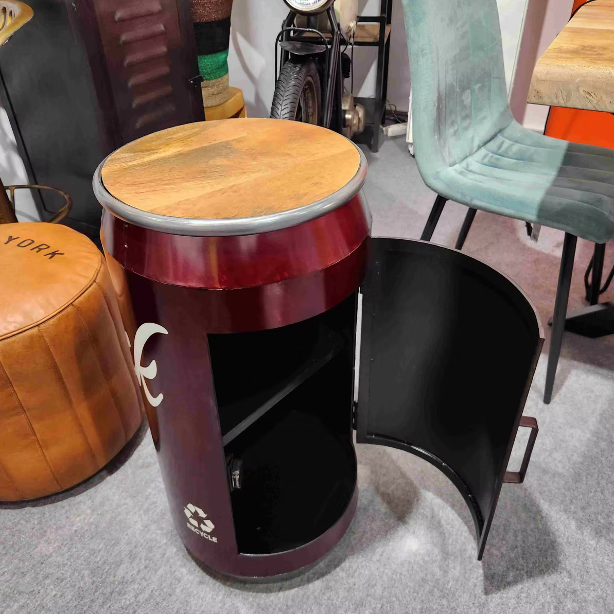 Mobiletto comodino Tavolino Coca Cola 3 in ferro e legno lavorato a mano