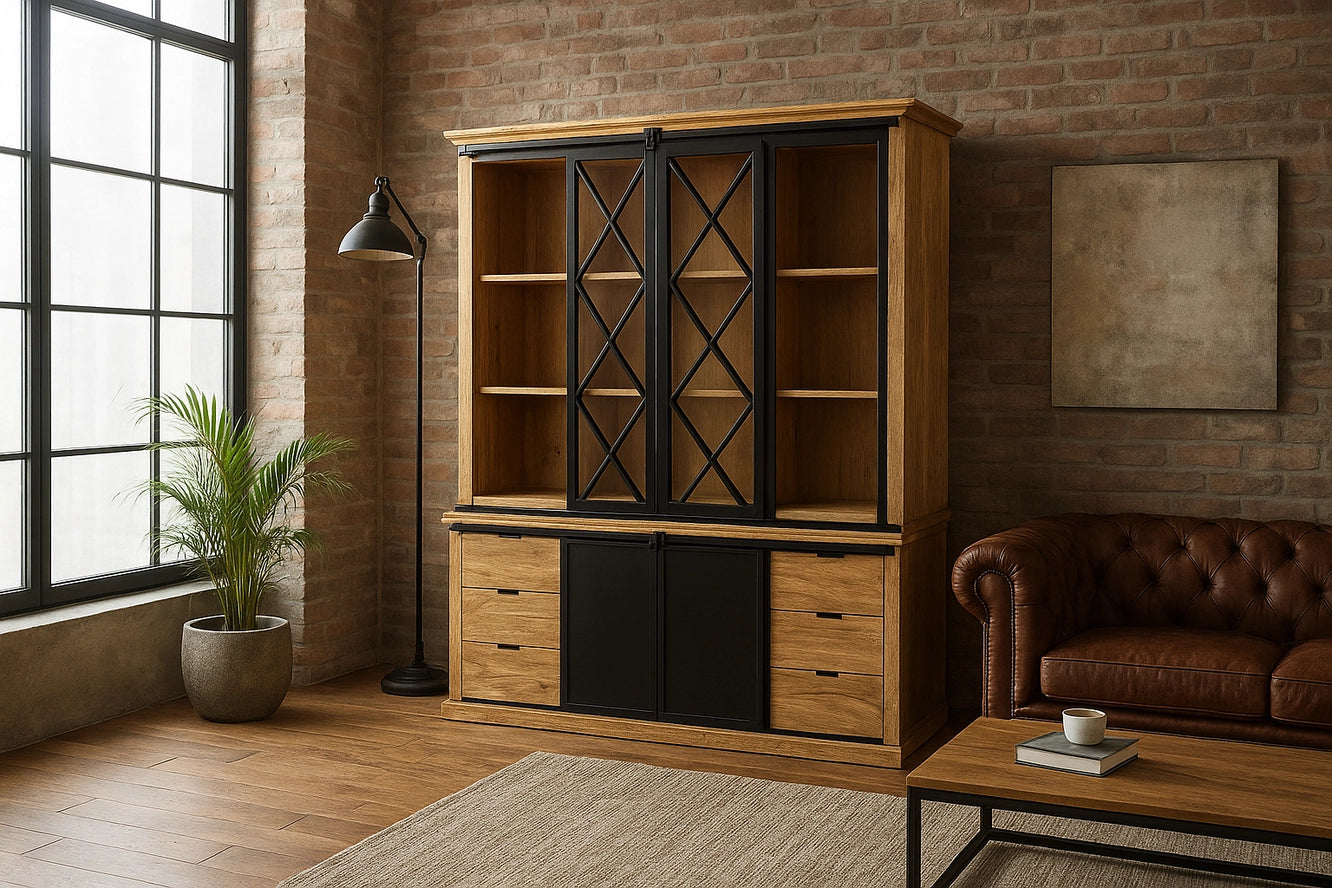 Vetrina railport In vero legno massello lavorato a mano 180x42x220