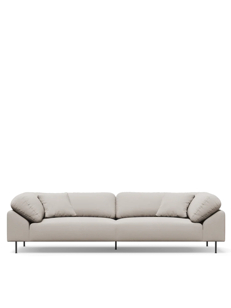 Utilizzando curve voluminose e cuscini dello schienale disposti obliquamente, Collar reinterpreta il design classico del divano in un look contemporaneo e accattivante. In combinazione con lo schienale basso, il cuscino dello schienale continuo funge da collare e, sprofondando nella morbida schiuma memory foam accuratamente selezionata, si ottiene la sensazione di un morbido abbraccio.