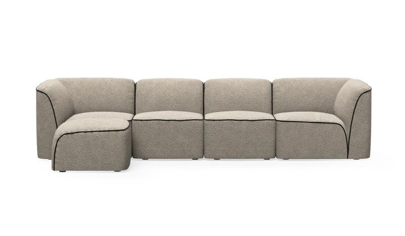 La sezione include: 2 moduli angolari, 2 moduli centrali (66 cm) e 1 pouf