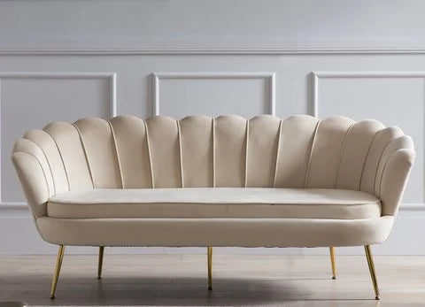 Fuggite dalla vita di tutti i giorni e godetevi un po' di tempo libero. Il moderno divano a 3 posti dal design a conchiglia è dotato di un elegante rivestimento in tessuto dall'effetto velluto e colpisce per la seduta e lo schienale arrotondato. La struttura a 4 piedi in metallo color oro non solo garantisce una posizione sicura, ma offre anche un ottimo contrasto con il rivestimento del divano. L'imbottitura del sedile e dello schienale, l'alto cuscino del sedile e la forma elegante vi garantiscono un fattore di relax di prima classe. La forma arrotondata conferisce un aspetto morbido. Questo divano a conchiglia è un vero gioiello e non sarà solo un punto culminante visivo nella vostra casa, ma anche il vostro nuovo luogo di benessere. Altezza seduta: ca. 44 cm, profondità seduta: ca. 56 cm, altezza cuscino sedile: 4 cm, altezza schienale: 40 cm, seduta e schienale arrotondati con cuscino alto, design a conchiglia. Portata max. 320 kg, imbottitura in schiuma di poliestere, con copertura a tutto tondo, copertura resistente alla luce 4, copertura pilling 4, resistenza all'usura 100.000 cicli di abrasione.