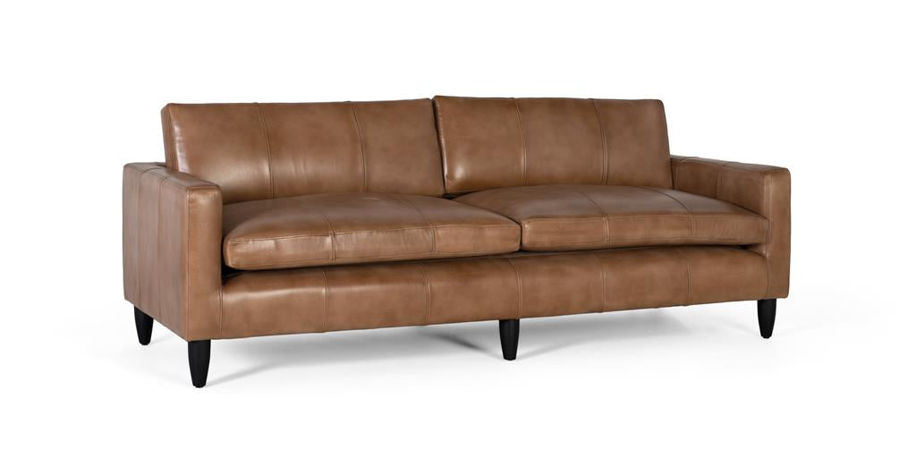Il divano rappresenta la perfetta fusione tra design contemporaneo, comfort e raffinatezza senza tempo. Rivestito in morbida pelle color cammello dalla consistenza naturale, questo divano dalle linee dritte e pulite conferisce un tocco caldo ed elegante a qualsiasi spazio.