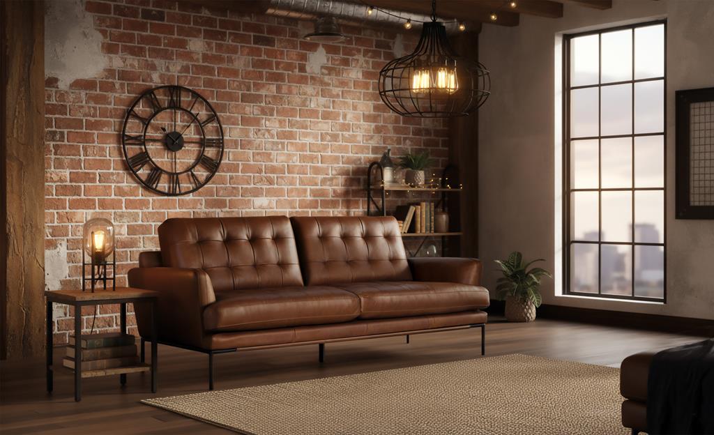 Questo divano elegante e sofisticato è realizzato in pelle di alta qualità, dalla texture morbida e con una finitura che migliora con il tempo. Sedute e schienale sono decorati con una raffinata lavorazione capitonné. Le linee dritte e i braccioli leggermente inclinati si abbinano a gambe in metallo con finitura bronzo anticato, che garantiscono stabilità e un tocco vintage contemporaneo. Ideale per soggiorni di personalità.
