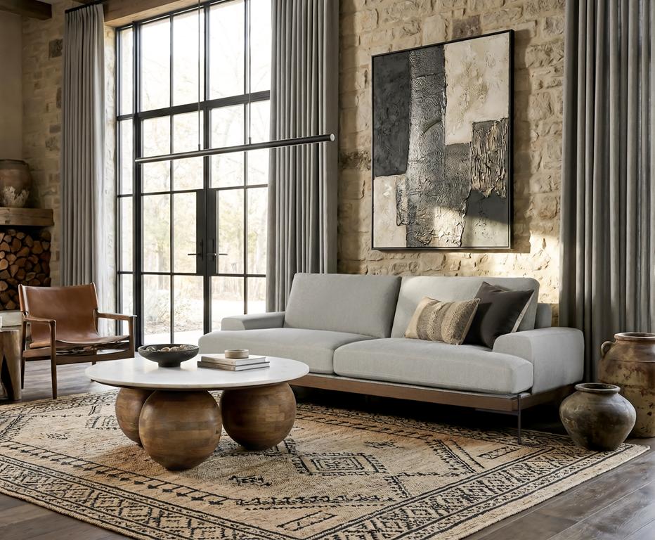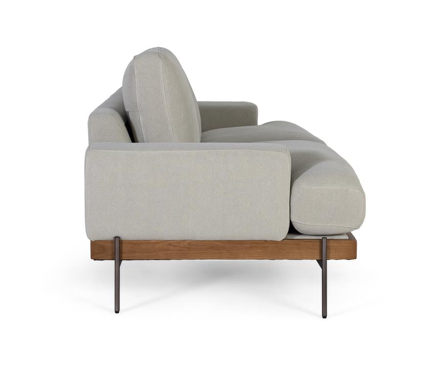 Questo divano unisce comfort e design contemporaneo grazie al rivestimento in lino grigio chiaro. La struttura è in legno di frassino, che si distingue per la sua durevolezza e il calore naturale del legno. Le gambe in metallo anticato ne rafforzano la stabilità e aggiungono un contrasto sofisticato. Con ampie sedute e morbidi cuscini, questo divano a 3 posti è perfetto per godersi il comfort senza rinunciare a un'estetica raffinata.