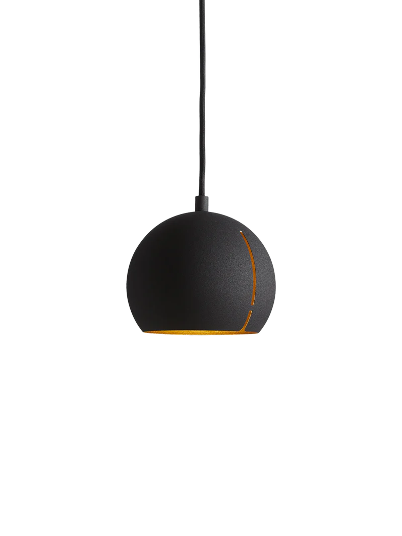 La lampada a sospensione Gap combina un guscio esterno grezzo in metallo verniciato a polvere con un interno femminile color ottone, creando una luce calda e accogliente. L'elegante fessura nella forma lascia fuoriuscire la luce e crea un riflesso grafico con un bagliore dorato dall'interno. Appendete la lampada a sospensione Gap da sola o in combinazione con altre lampade a sospensione Gap per aumentare l'esperienza del riflesso.