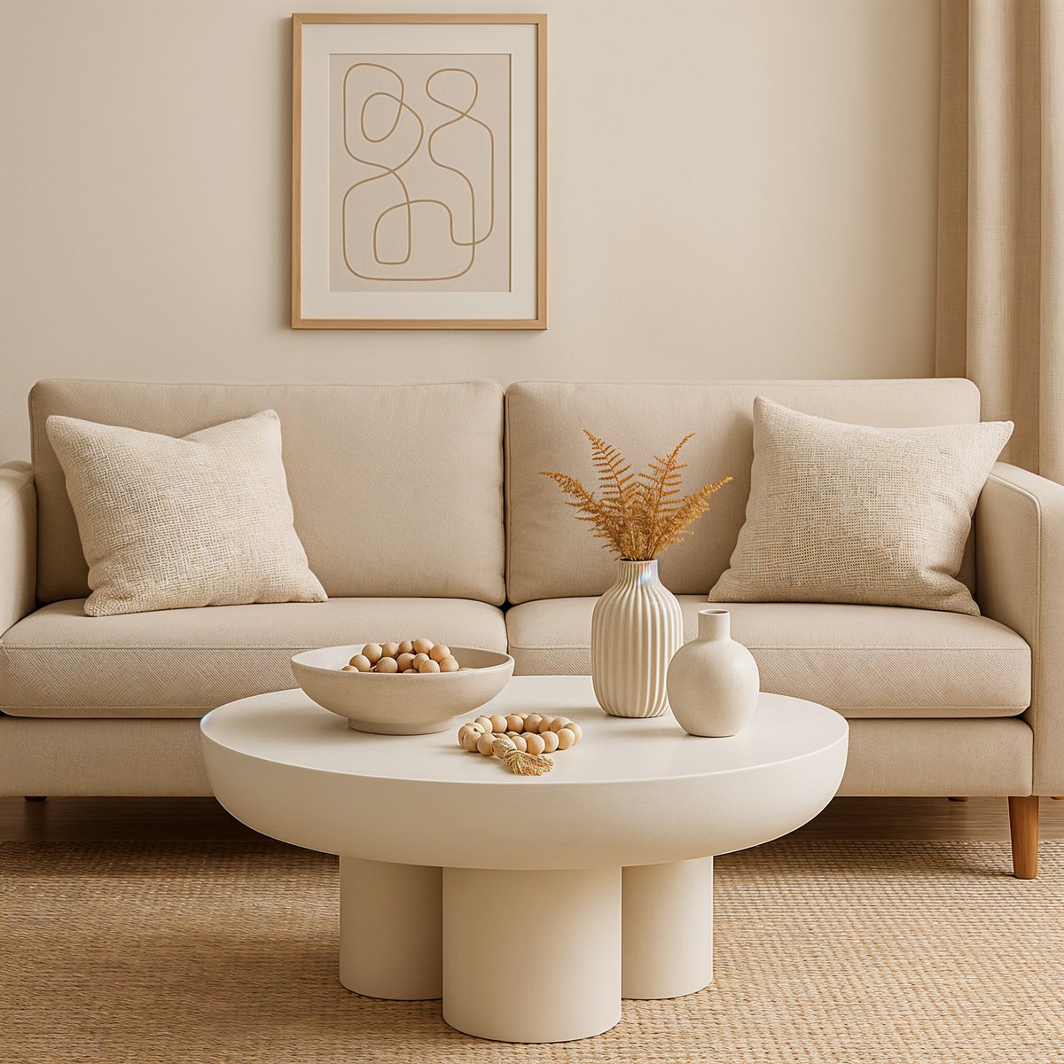 Questo elegante tavolino combina un design minimalista con la leggerezza nordica: realizzato in MDF di alta qualità e rifinito con un elegante intonaco di calce in bianco naturale, irradia la calma e la chiarezza caratteristiche dello stile scandinavo. Il piano rotondo del tavolo con un diametro di 70 cm si inserisce armoniosamente in qualsiasi paesaggio di divani e crea una sensazione di spazio morbido e organico. Tre robusti piedini sostengono saldamente il piano del tavolo e allo stesso tempo aggiungono un sottile accento architettonico. Il tavolo è ideale come spazio per riporre libri, decorazioni o per godersi il caffè tutti i giorni e, grazie al suo design semplice e senza tempo, si adatta facilmente a diversi stili di vita. Che sia come punto focale nel soggiorno o come complemento d'arredo, questo tavolino rotondo combina funzionalità pratica con un'elegante estetica nordica. Base 3 piedini, Ø piano tavolo: 70 cm. Per saperne di più