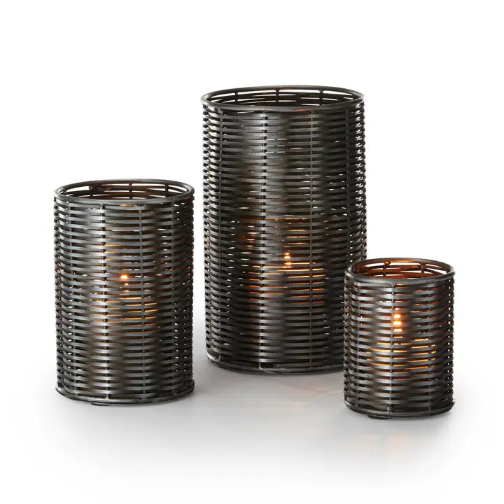 BLACK BEAUTY L'illusione ottica prende vita quando l'apparenza di rattan nasconde, a un esame più attento, un intreccio ignifugo in acciaio annerito. Una magica atmosfera nera per balcone, terrazza o patio: lascia che SALA illumini con una luce soffusa e stabile. Un set di tre pezzi così uniti da sembrare inseparabili. Ah, che meraviglia! Placcatura in ferro grigio Adatto per candele, decorazioni autunnali, natalizie, regali, decorazioni per la casa, interno ed esterno.