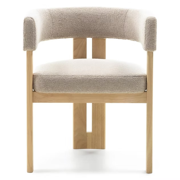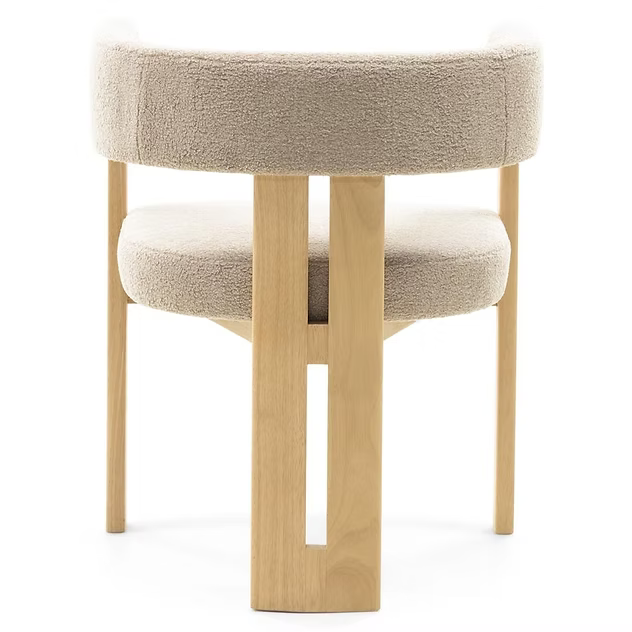 La sedia HARRIS è caratterizzata da una robusta struttura in legno di caucciù che non solo aggiunge eleganza, ma garantisce anche una stabilità eccezionale. Seduta e schienale sono rivestiti in morbido tessuto bouclé color crema, che offre sia un aspetto straordinario che un comfort eccezionale.