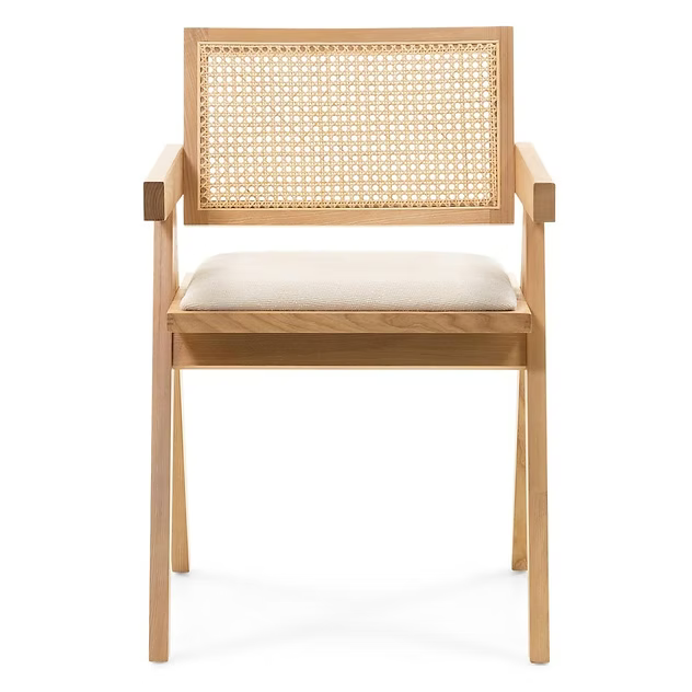 La struttura in legno di frassino le conferisce un carattere unico, esaltando la bellezza naturale del materiale. La finitura naturale aggiunge eleganza, rendendola perfetta sia per interni moderni che classici. Uno degli elementi più distintivi della sedia Frida è lo schienale, decorato con un intreccio in paglia di Vienna finemente lavorato.