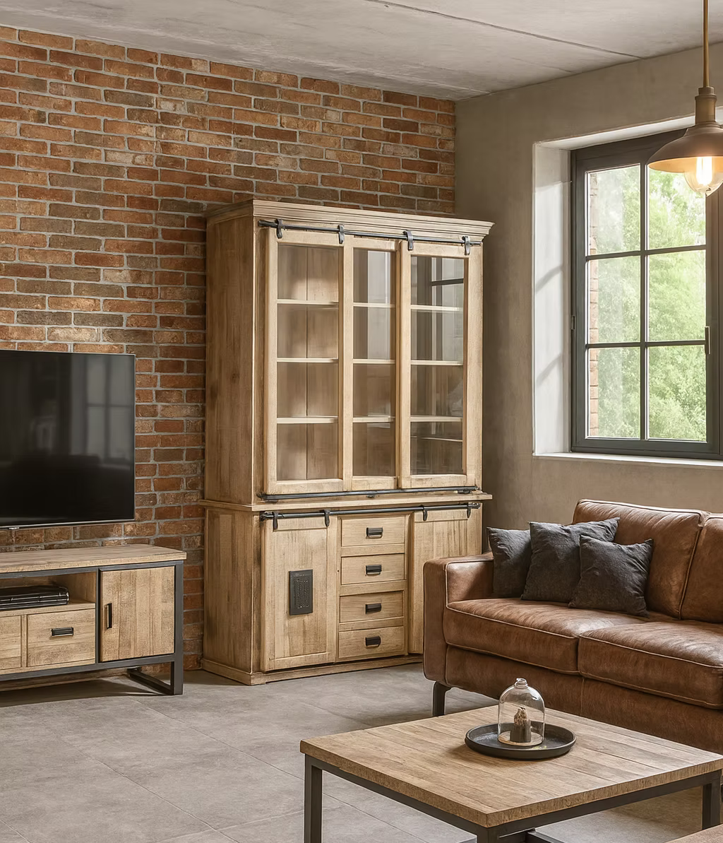 Vetrina dispensa Jupiter naturale150x45x220Vetrina realizzata in legno massello con dettagli in ferro,ante scorrevoli e cassetti. vintage industriale shabby chic etnico
