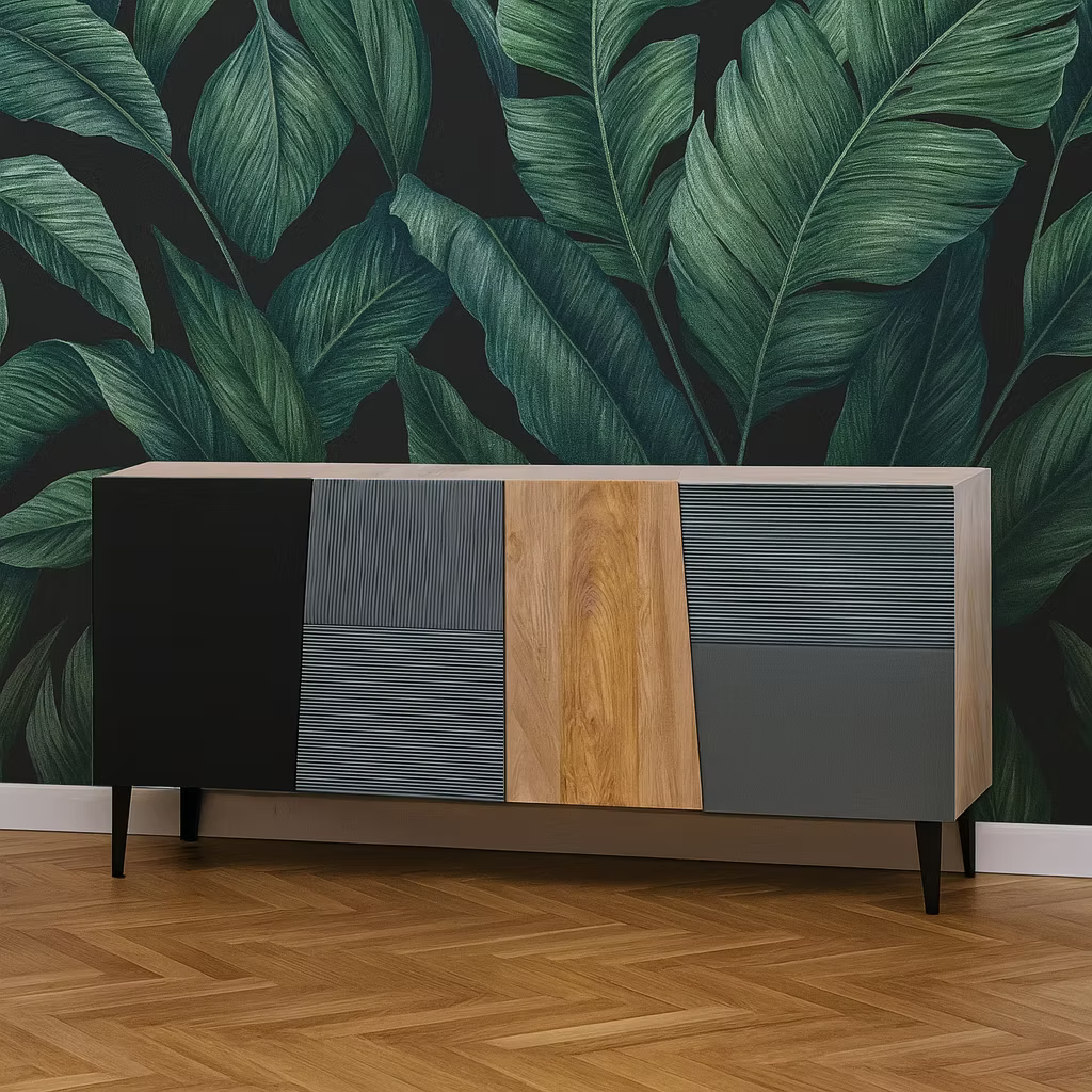 Madia credenza Marcus grey in vero legno massello lavorato a mano 140x40x80