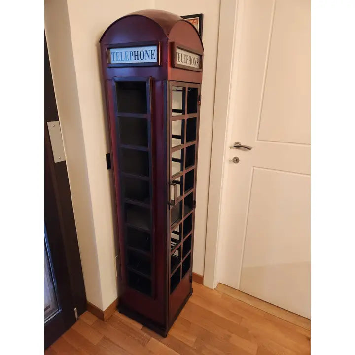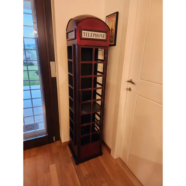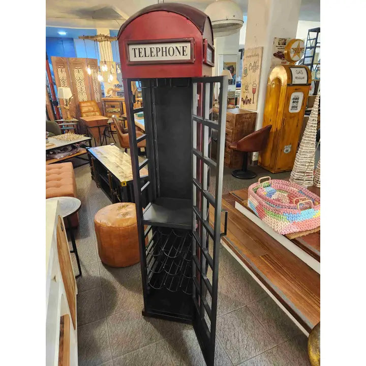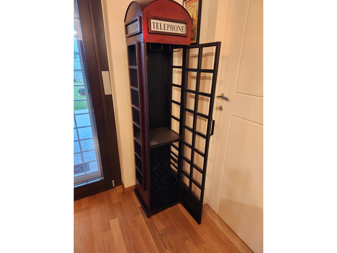 Mobile bar cabina telefonica Londra Spettacolare mobile realizzato in ferro battuto lavorato a mano con ripiano portacalici e porta bottiglie 40x38x175