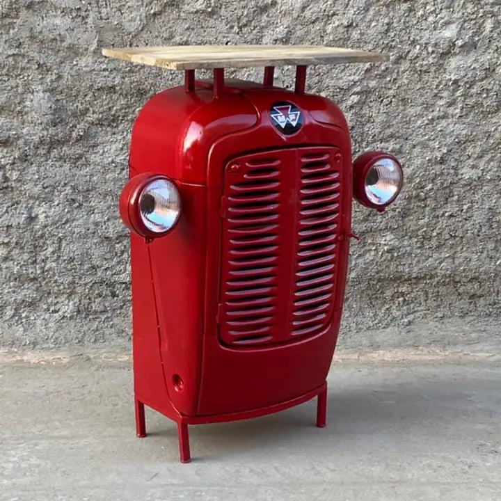 Mobile bar rosso Trattore 80x35x100 In vero ferro lavorato a mano e legno massello I fari si accendono vintage industriale shabby chic casa loft