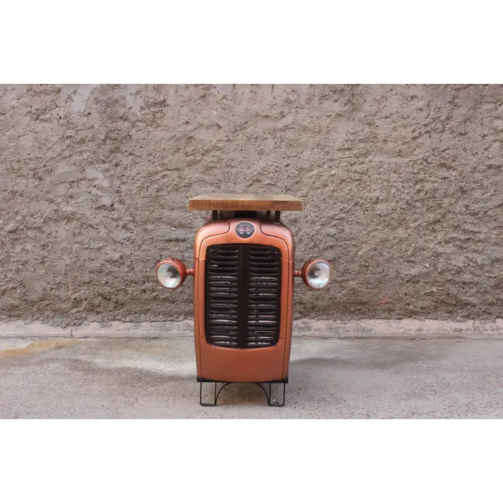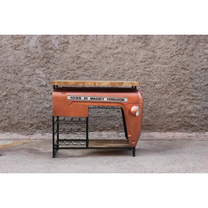 Mobile bar trattore design vintage industriale shabby chic etnico struttura in ferro riciclata da vecchio trattore ripiani in legno massello e ferro lavorato a mano 120x60x105
