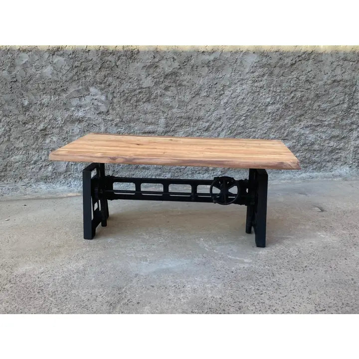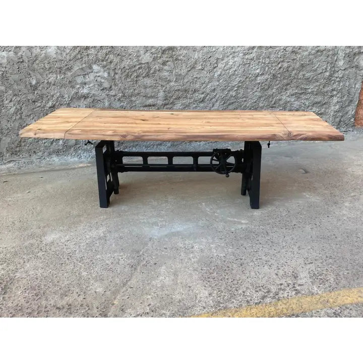 Tavolo Crank table In ghisa e legno massello scortecciato 180x90 h regolabile allungabile +40+40 Vintage industriale shabby chic etnico