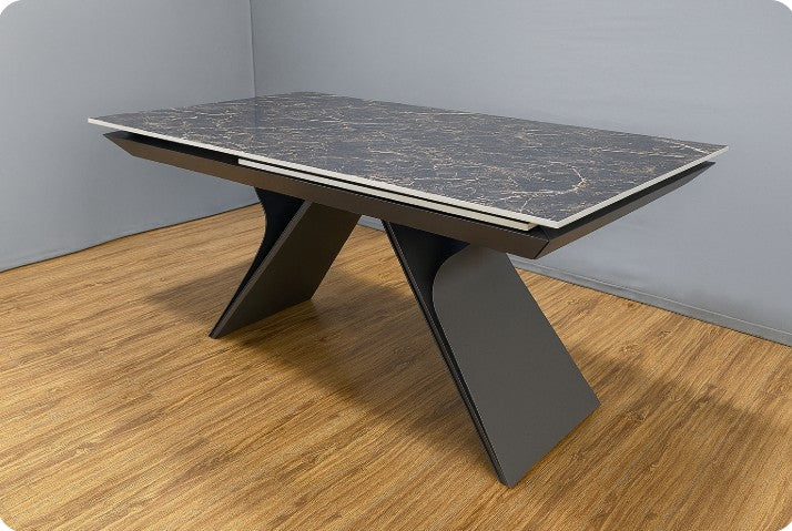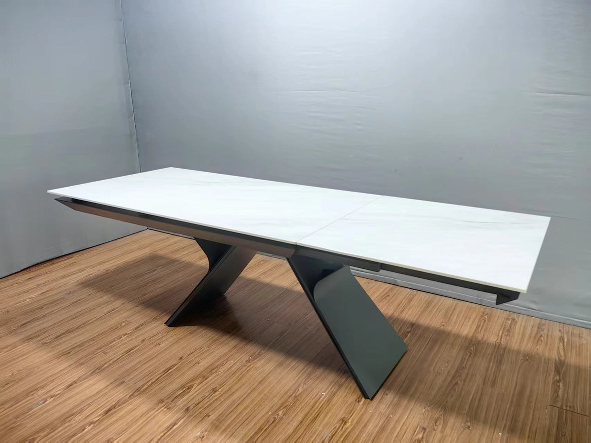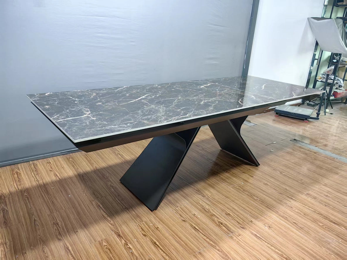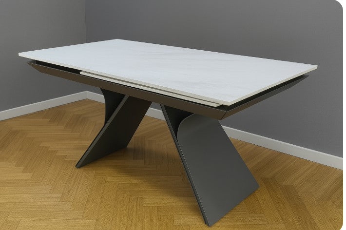 Tavolo Stef spettacolare tavolo allungabile Gambe in ferro battuto lavorate a mano Piano in gres ceramica finitura marmo 160x90 +80 PREZZO PROMO IN PRE ORDINE CONSEGNA LUGLIO