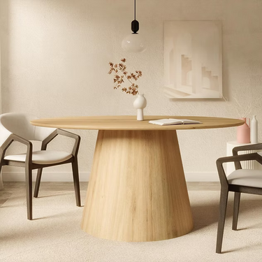 Un perfetto connubio tra eleganza e funzionalità: questo tavolo da pranzo ovale conferisce al tuo arredamento una forma morbida e organica, offrendo al contempo una superficie robusta e invitante per i pasti quotidiani o le riunioni speciali.