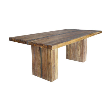 Il teak conciato dalle intemperie proviene da vecchie case, fienili, abbeveratoi per il riso e altri oggetti di uso quotidiano in Indonesia. Ora può essere utilizzato in modo sensato come mobile realizzato con cura e quindi protegge anche l'ambiente. La forma cubica di questo imponente tavolo è ancora moderna dopo 20 anni, mentre il colore naturale e la superficie spazzolata emanano un fascino che semplicemente non è possibile ottenere con il legno nuovo. Ogni pezzo ha un suo volto e si distingue dalla normalità della vita quotidiana. Spessore piastra 30 mm raddoppiata a 60 mm, dimensioni gamba 15x50 cm, distanza alle gambe sul lato corto 30 cm, sul lato lungo 25 cm, distanza tra le gambe 150 cm Per saperne di più
