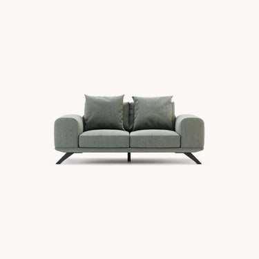 The Aniston sofa is a piece of modern design where rectangular lines blend harmoniously with bold angles. Supported by multiple stainless steel trapeze feet, both armrests are wide and padded for extra comfort. Along the backrest, the padded cushions come together to form a perfect seat that invites you to experience moments of happiness.