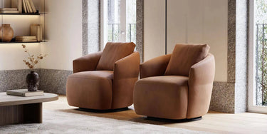 A design designed for comfort in commercial spaces, Alice is a compact, round-shaped armchair that can adapt to any environment. It features a swivel rear base that always returns to the starting point, to maintain the right position after use. This piece is enriched by exquisite stitching that enhances its details, in particular the horizontal stitching on the backrest which aligns perfectly with the height of the seat.