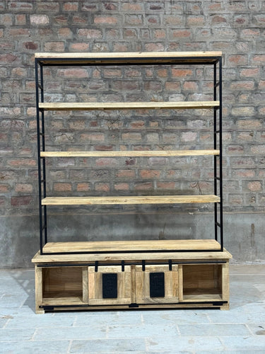 Libreria jupiter Spettacolare in vero legno masselo lavorato a mano e ferro 180x45x55