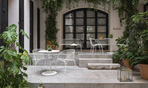 Collezione realizzata in tondino di acciaio zincato e verniciato a polvere poliestere. I nostri materiali sono adatti all'uso intensivo e resistenti alle intemperie. Perfetto per uso interno, esterno e contract.