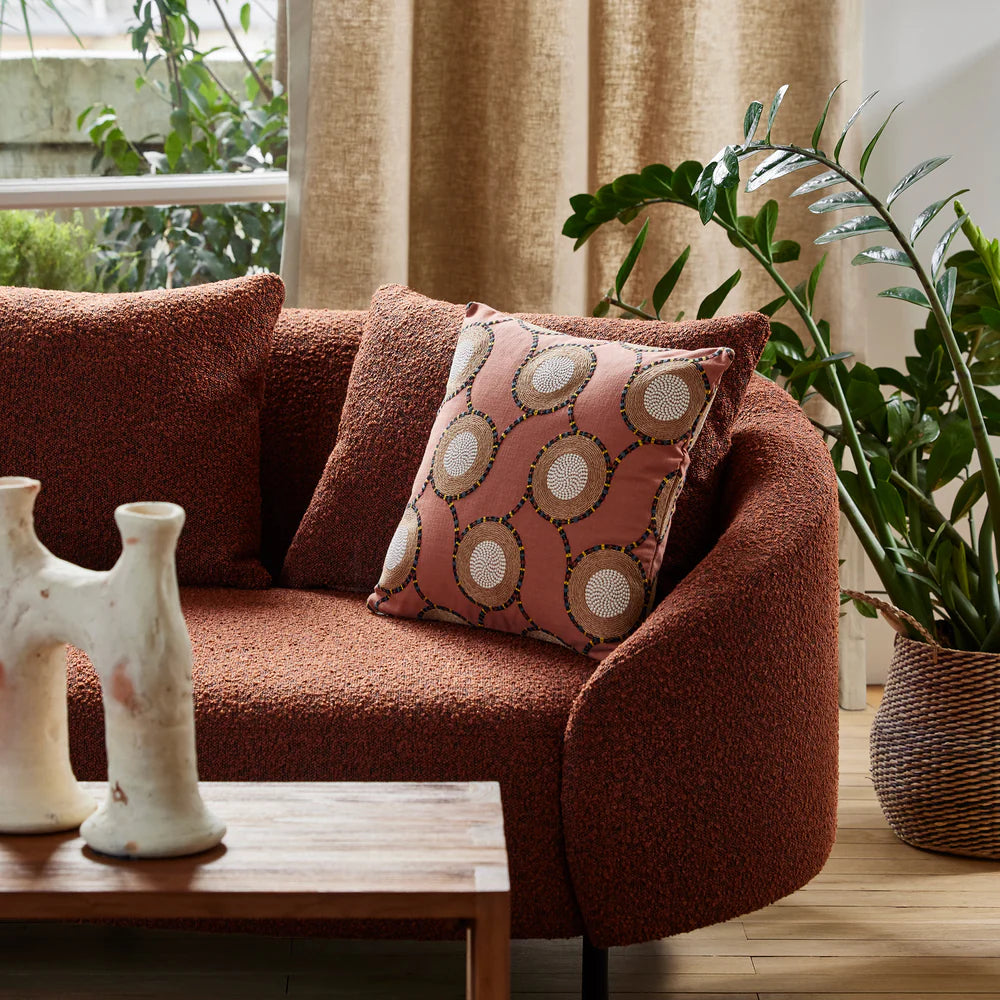 Diventerà il fulcro dei tuoi interni, donandogli un aspetto accogliente e retrò. Il suo rivestimento in spugna ecrù gli conferisce quell'effetto cocoon che amiamo. Le sue voluttuose linee curve e i numerosi cuscini imbottiti offrono tutto il comfort necessario per un momento di relax.