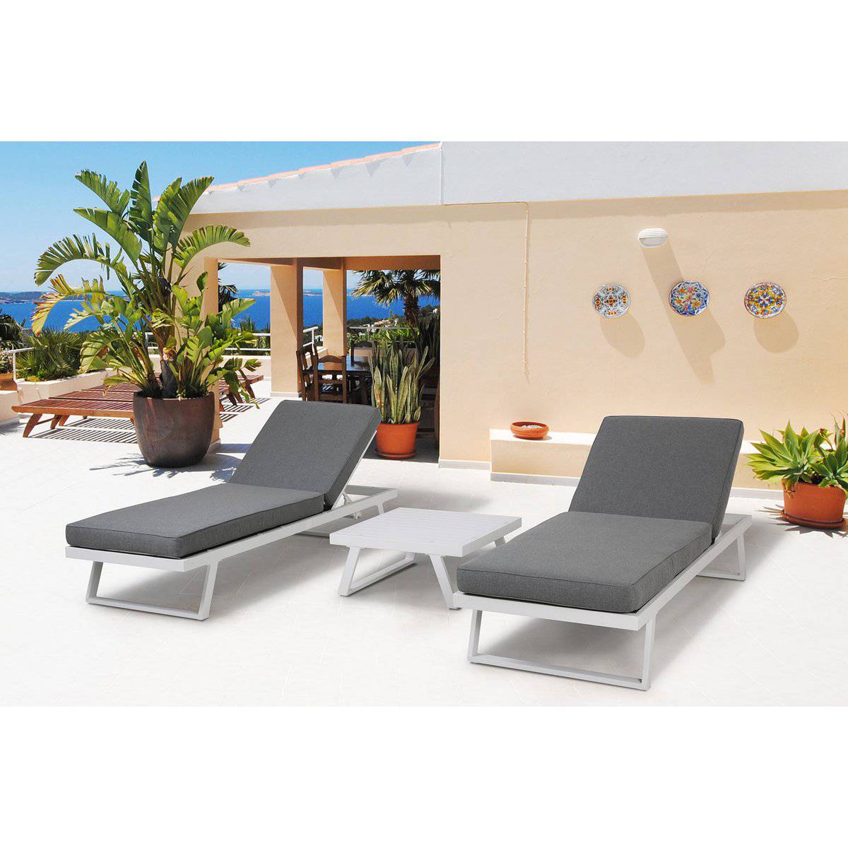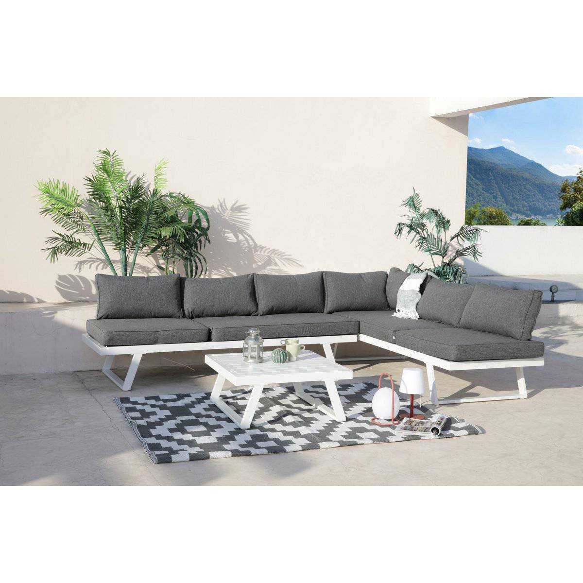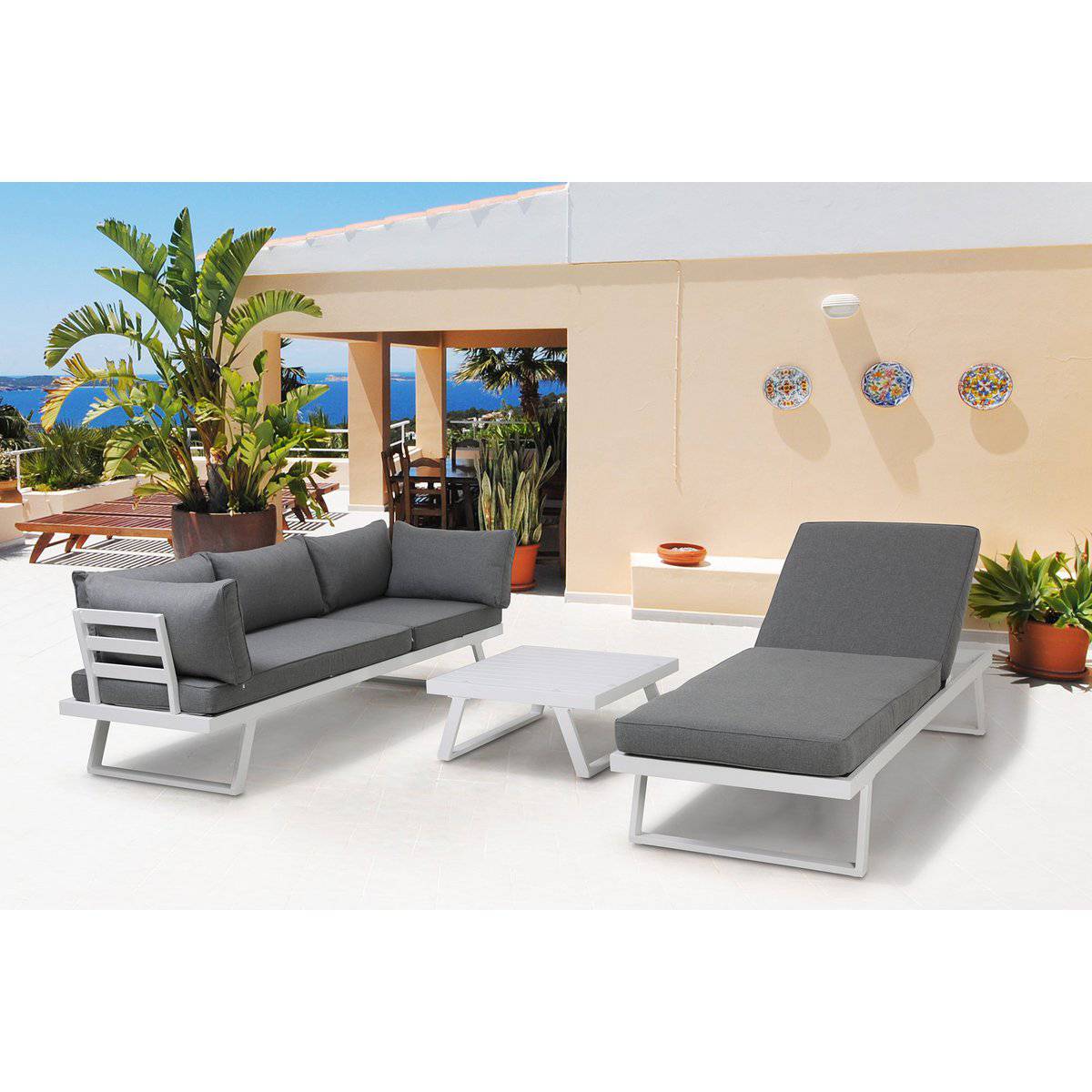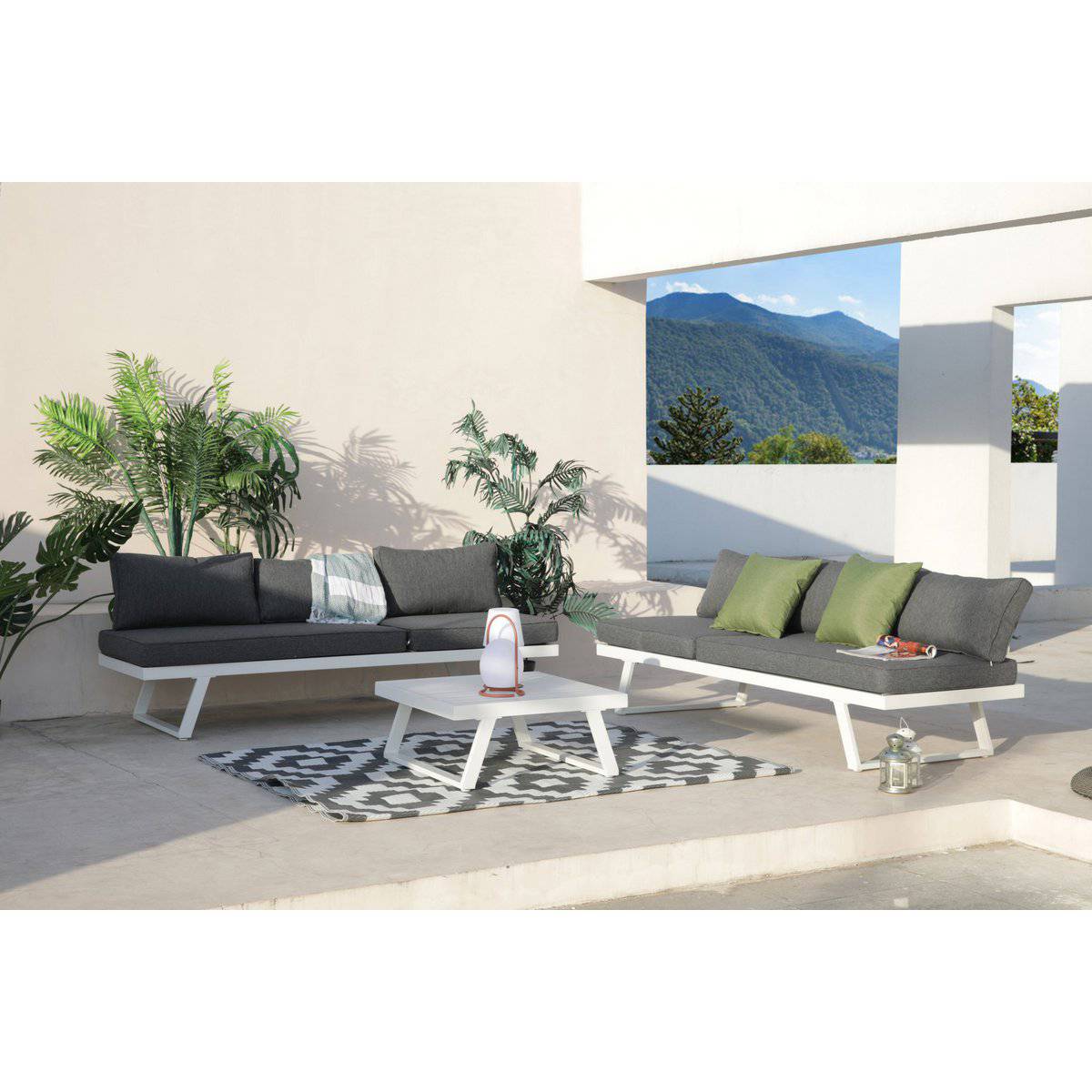 l'uso esterno. Il look moderno e lineare è completato dai cuscini