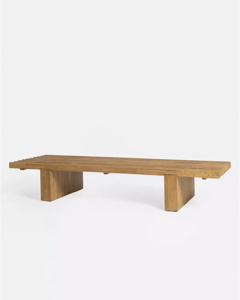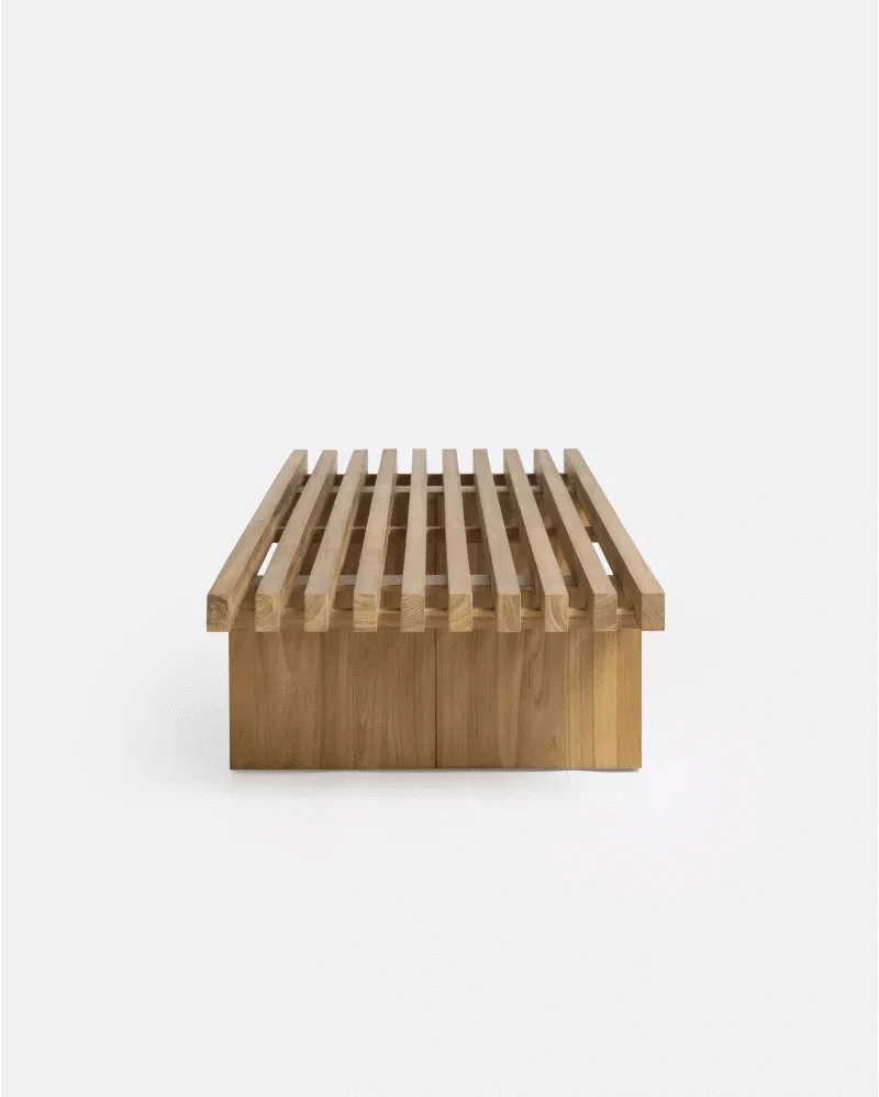 SURAT è una collezione pensata sia per l'uso interno che esterno. È caratterizzata dalle sue doghe parallele regolarmente distanziate, che facilitano il drenaggio dell'acqua e le conferiscono un aspetto distintivo. La sua superficie irregolare è stata progettata per essere utilizzata con vassoi, piatti o tavoli, in modo che non fungano solo da supporto, ma anche da aggiunta decorativa al tavolo. Realizzato in legno di teak riciclato e con dimensioni insolite per un tavolino da caffè, SURAT si distingue per la sua versatilità e l'equilibrio tra funzionalità e design innovativo.