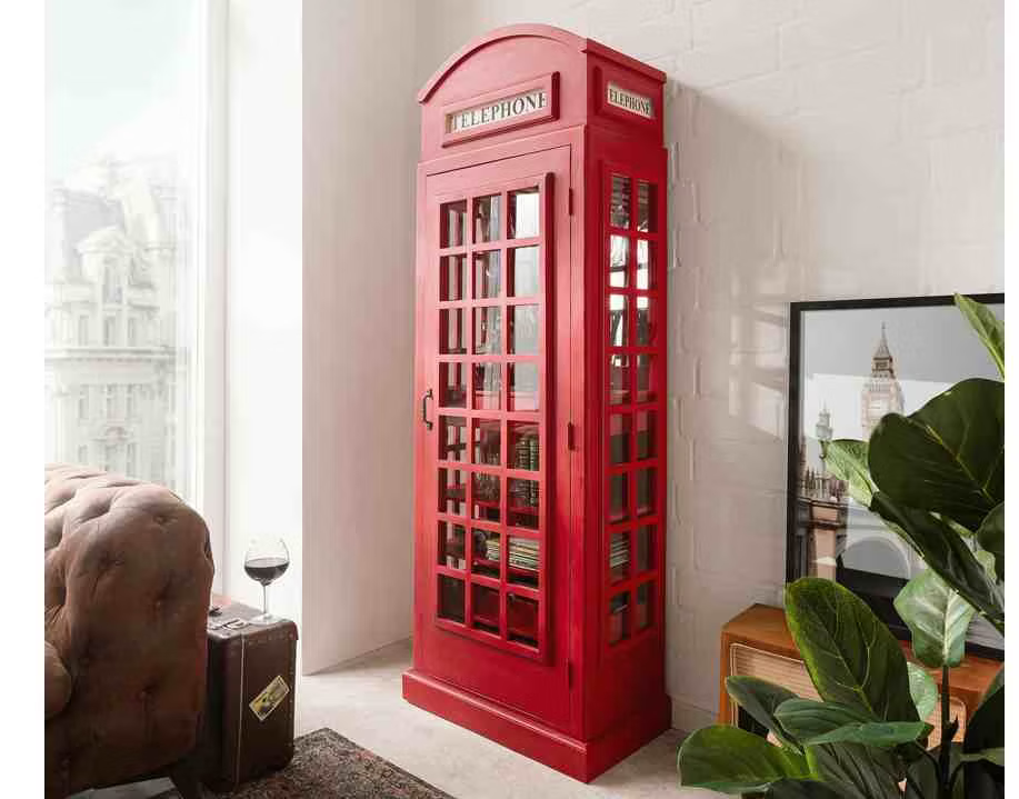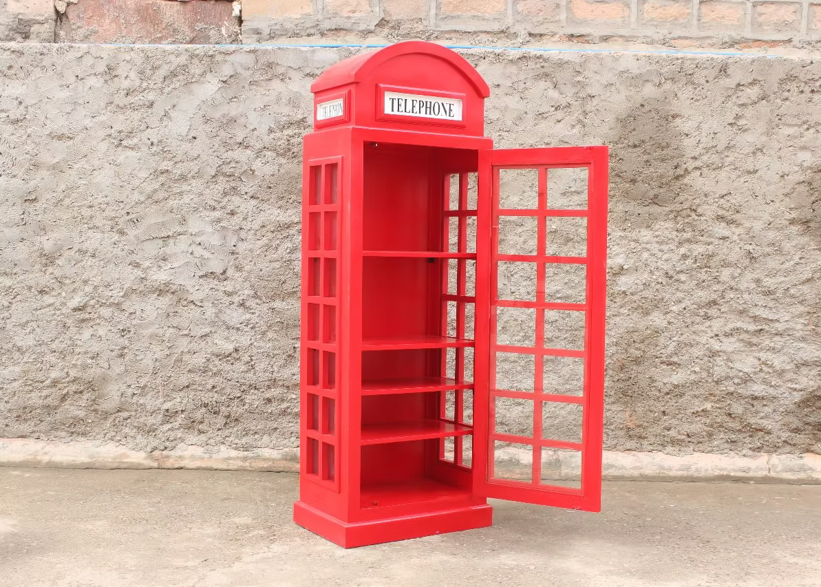 Libreria Cabina Londra In vero legno massello lavorato a mano e vetroVerniciata a mano 60x40x180
